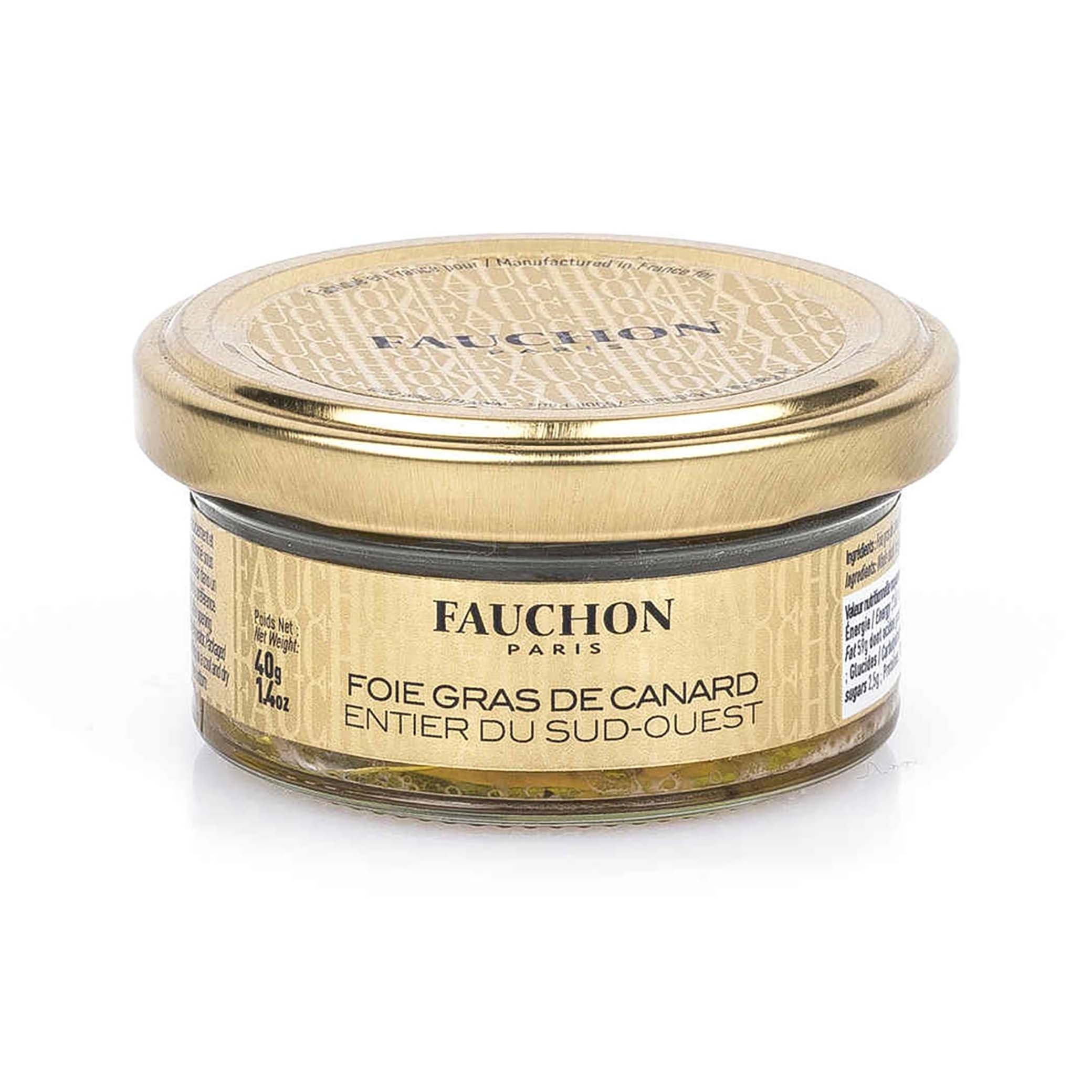 Το Foie Gras πάπιας ολόκληρης πάπιας της FAUCHON από τη Νοτιοδυτική Ευρώπη προέρχεται από υπαίθριες φάρμες και είναι καρυκευμένο και παρασκευασμένο στο χέρι με παραδοσιακό τρόπο. Χωρίς πρόσθετα ή συντηρητικά, παρασκευάζονται από τεχνίτες, στην περιοχή της Νοτιοδυτικής Γαλλίας, και παρασκευάζονται από ένα φρέσκο συκώτι που επιλέγεται για την εξαιρετική του ποιότητα και ενισχύεται με μια πινελιά αλατιού Guérande, "fleur de sel" και μια επιλογή 3 πιπεριών. Αυτή η συνταγή terroir σας προσκαλεί να ανακαλύψετε το πραγματικό απλό φουά γκρα πάπιας ολόκληρης από τη Νοτιοδυτική περιοχή. Δυνατή γεύση και μοσχοβολιστικά αρώματα. Αυθεντικότητα και ρουστίκ χαρακτήρας.